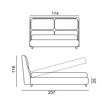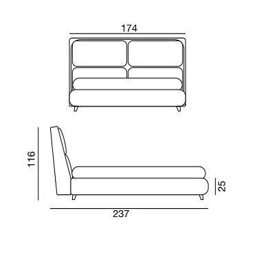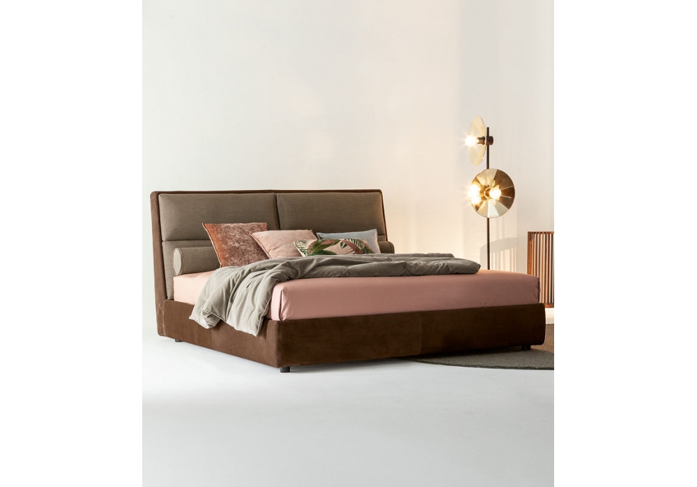 James von Ludovica und Roberto Palomba für Twils entworfen, ist ein gepolstertes Bett mit einem 25 cm hohen Bettrahmen, das in verschiedenen Größen und Modellen hergestellt wird. Der abnehmbare Bezug ist in verschiedenen Stoffen und Farben erhältlich. Die Füße sind rund geneigt Perlmuttfarbe (PIE38).