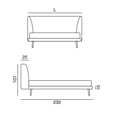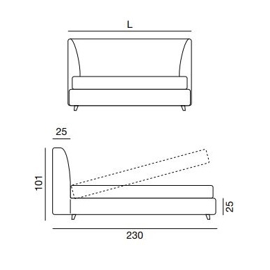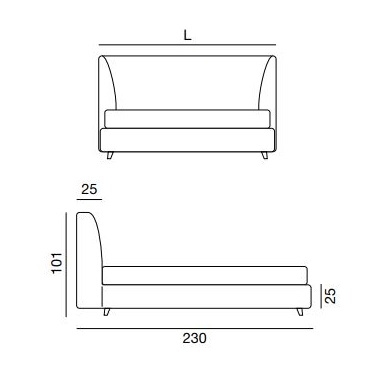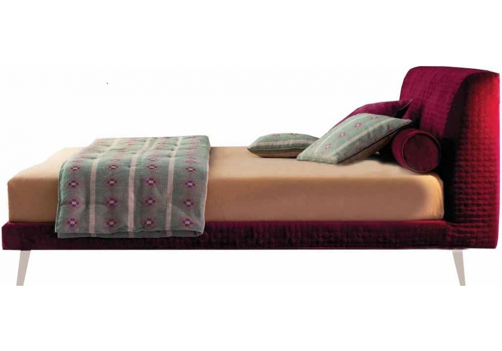 èS, entworfen und hergestellt von Twils, ist ein Polsterbett mit einem 10 oder 25 cm hohen Bettrahmen. Der abnehmbare Bezug ist in verschiedenen Stoffen und Farben erhältlich. Das Bett ist in verschiedenen Ausführungen und Größen erhältlich. Die Füße sind aus schrägem Holz mit Perlmutt-Finish.
