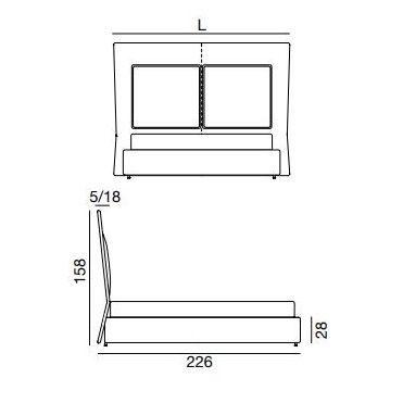 SP2802 Alto von Silvia Prevedello für Twils entworfen, ist ein Polsterbett mit 18 oder 28 cm hohem Bettrahmen, mit hohem Kopfteil. Der abnehmbare Bezug ist in verschiedenen Stoffen und Farben erhältlich. Das Bett ist in verschiedenen Ausführungen und Größen erhältlich. Die Füße haben ein Graphit-Finish oder perlmuttfarbenes Holz.
