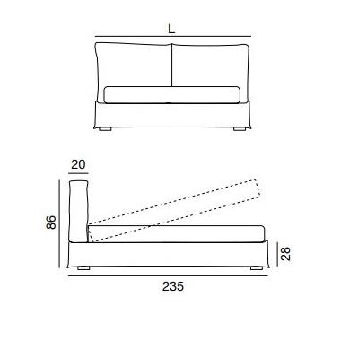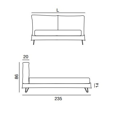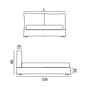 Academy Piuma, entworfen und hergestellt von Twils, ist ein Polsterbett mit einem 16 oder 28 cm hohen Bettrahmen, mit abnehmbaren Bezügen und in verschiedenen Modellen und Größen erhältlich. Die Polsterung ist in zahlreichen Stoffen und Farben erhältlich. Die Füße haben ein Graphit- oder Perlmutt-Finish.