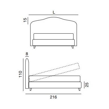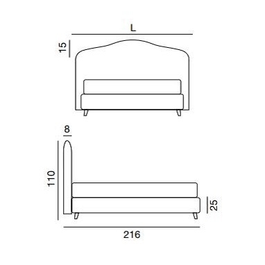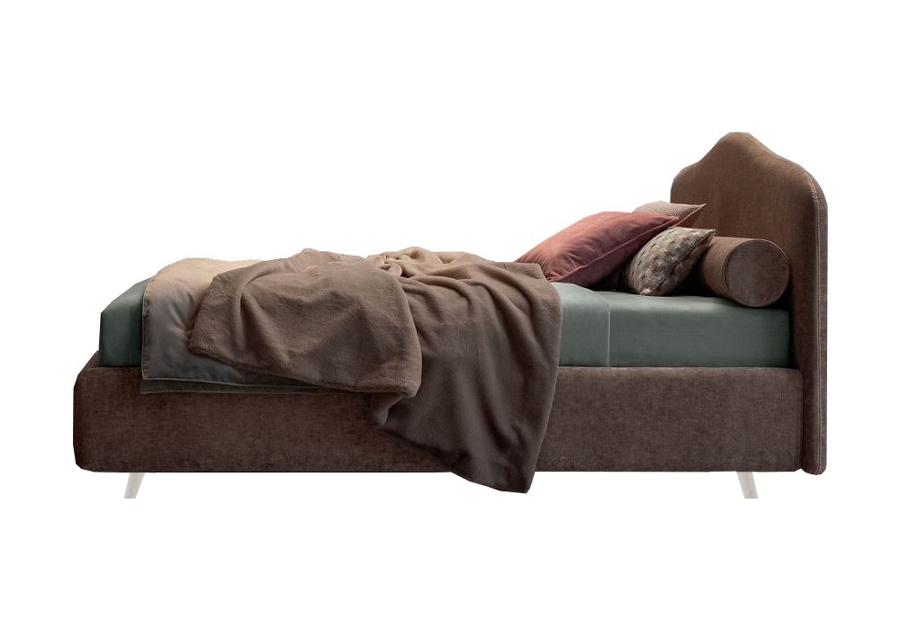 Medea, entworfen und hergestellt von Twils, ist ein Polsterbett mit einem 25 cm hohen Bettrahmen. Der abnehmbare Bezug ist in verschiedenen Stoffen und Farben erhältlich. Das Bett ist in verschiedenen Ausführungen und Größen erhältlich. Die Füße sind in einem Perlmutt-Finish abgewinkelt.