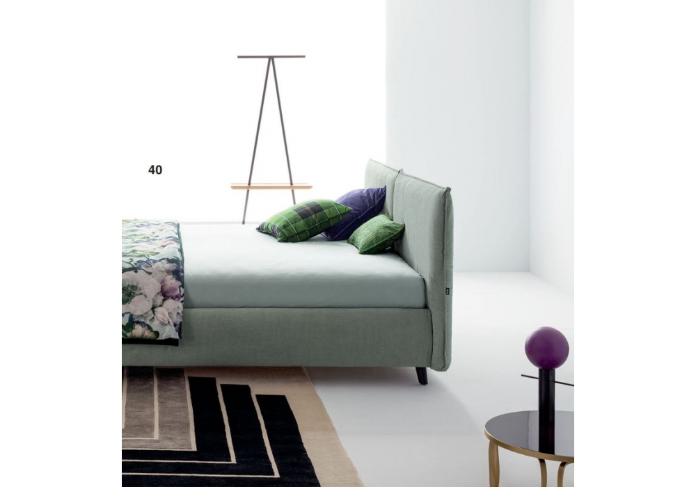 Philip, entworfen und hergestellt von Twils, ist ein Polsterbett mit einem 28 cm hohen Bettrahmen. Der abnehmbare Bezug ist in verschiedenen Stoffen und Farben erhältlich. Das Bett ist in verschiedenen Ausführungen und Größen erhältlich. Die Füße sind aus schrägem Holz mit Perlmutt-Finish.