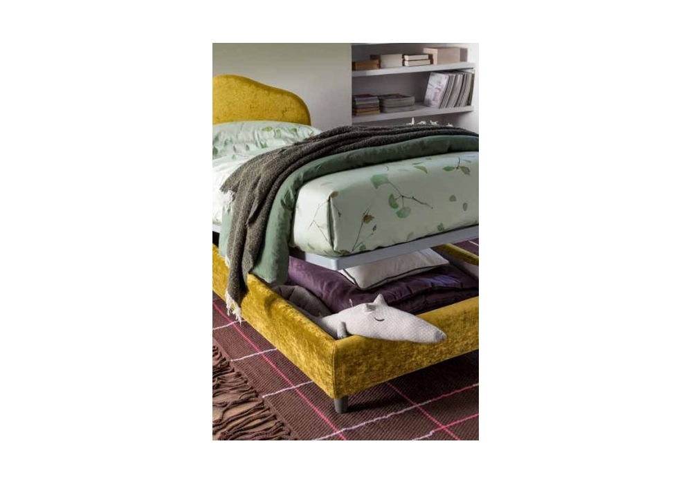 Medea, entworfen und hergestellt von Twils, ist ein Einzelbett mit einem 25 cm hohen Bettrahmen. Die Füße sind aus Perlmutt (PIE38). Abnehmbarer Bezug in verschiedenen Stoffen und Farben. Erhältlich in verschiedenen Modellen und Größen. Auf Anfrage können die Füße in anderen Ausführungen hergestellt werden.