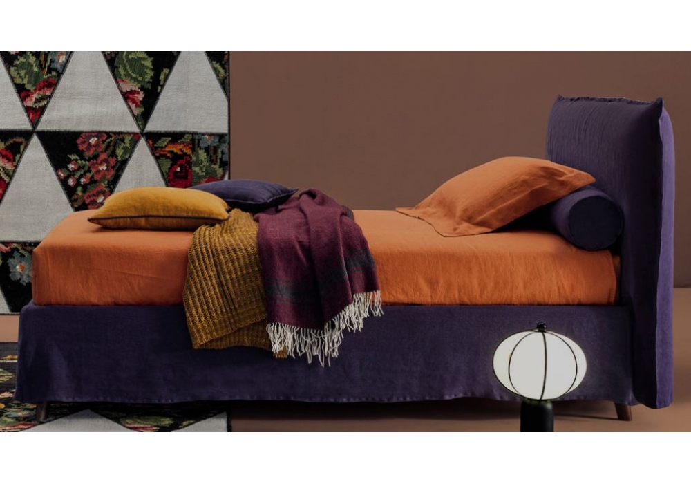 Edo, entworfen und hergestellt von Twils, ist ein Einzelbett mit einem 25 cm hohen Bettrahmen. Die Füße sind aus Perlmutt (PIE68). Abnehmbarer Bezug in verschiedenen Stoffen und Farben. Erhältlich in verschiedenen Modellen und Größen. Auf Anfrage können die Füße in anderen Ausführungen hergestellt werden.