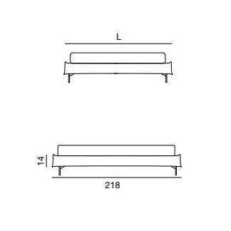Ada, entworfen und hergestellt von Twils, ist ein Bett mit Bettrahmen, das in zwei Höhen (14 oder 28 cm) erhältlich ist und in verschiedenen Modellen und Größen hergestellt wird. Der Bezug ist abnehmbar, in verschiedenen Stoffen und Farben. Die Füße sind zylindrisch mit Graphit- oder Perlmutt-Finish.