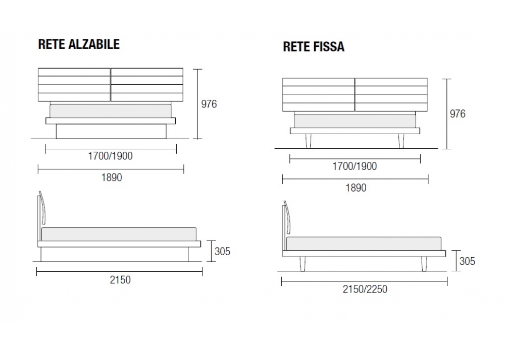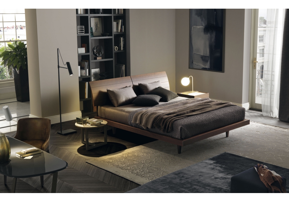 Giorgia von Ennio Arosio für MisuraEmme entworfen, ist ein Bett mit Kopfteil, bestehend aus zwei unabhängigen Elementen mit einstellbarer Neigung, die eine leichte Kurve bilden, die dem Nachtbereich ein zartes Zeichen von Stil verleiht. Erhältlich in der Version mit Füßen oder mit Behälter.