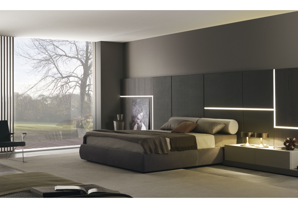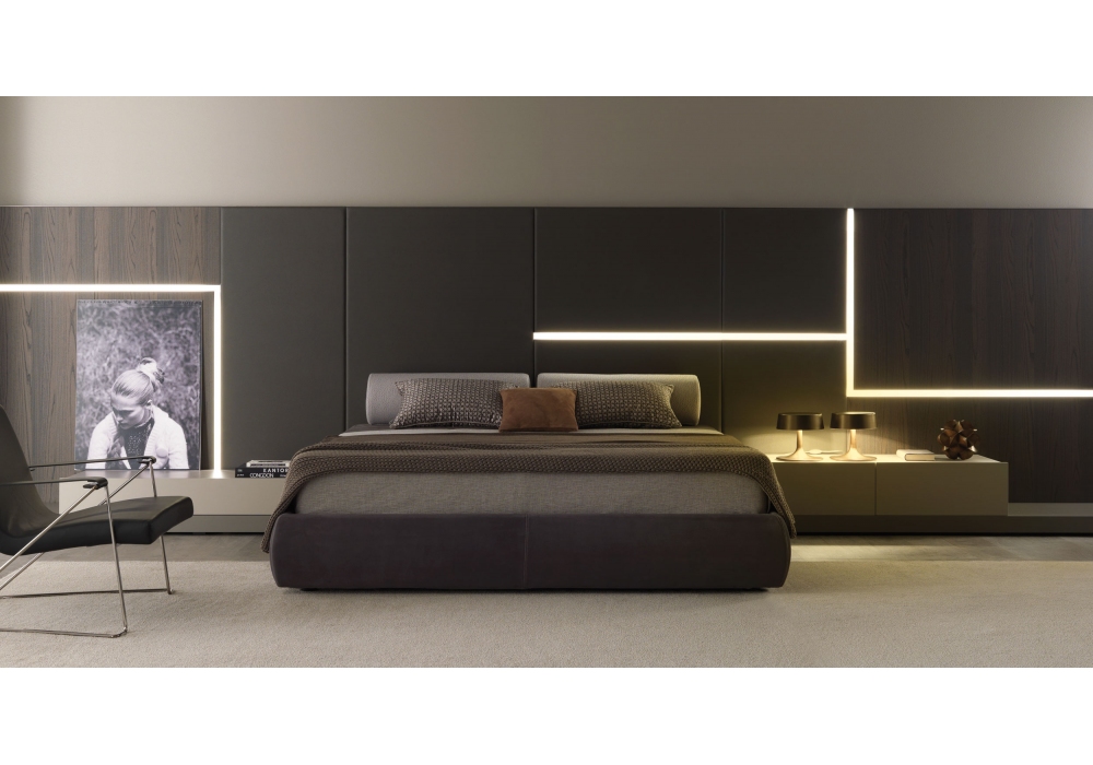 Ghiroletto von Mauro Lipparini für MisuraEmme entworfen, ist ein Bett mit gepolstertem Bettrahmen, mit abnehmbarem Bezug aus Stoff, Kunstleder oder Leder, es ist der neue Vorschlag für den Schlafbereich von MisuraEmme. Ein vielseitiges und diskretes Stück, das die Interaktion mit der Verkleidung zu seiner Stärke macht. Die extreme kompositorische Vielfalt ist in verschiedene Ausführungen gekleidet: Stoff, lackiert, Essenz. Das Paneelsystem kann auch mit einem integrierten Beleuchtungssystem und mit Aluminiumböden ausgestattet werden.