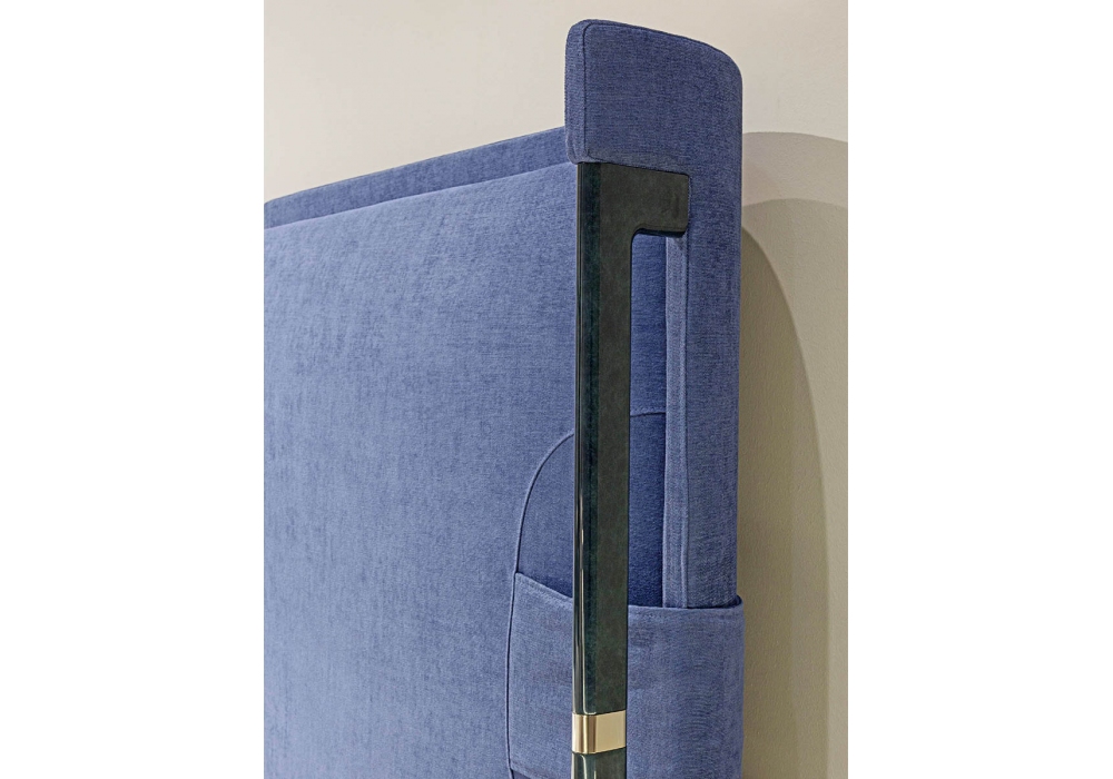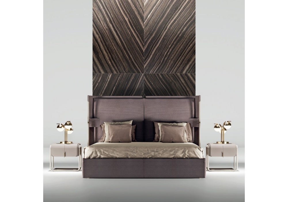 Eclipse von Andrea Bonini für Turri entworfen, ist ein Bett mit Massivholz- und Sperrholzstruktur in handdekoriertem glänzendem Polyester-Finish. Polsterung aus Polyurethanschaum mit unterschiedlicher Dichte mit nicht abnehmbaren Bezügen aus verschiedenen Ledern oder Stoffen.