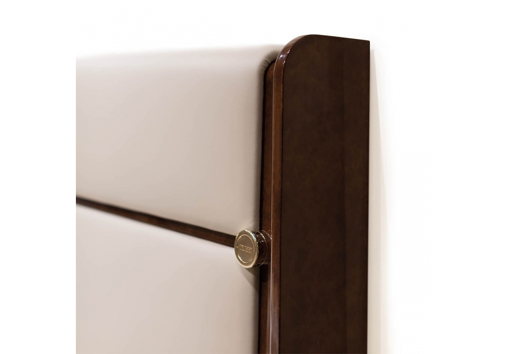 Madison von Andrea Bonini für Turri entworfen, ist ein Bett mit Struktur aus Massivholz und Sperrholz mit handdekoriertem glänzendem Polyester-Finish. Polsterung aus Polyurethanschaum mit unterschiedlicher Dichte mit nicht abnehmbaren Bezügen aus verschiedenen Ledern oder Stoffen.
