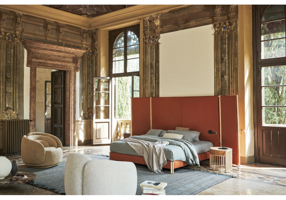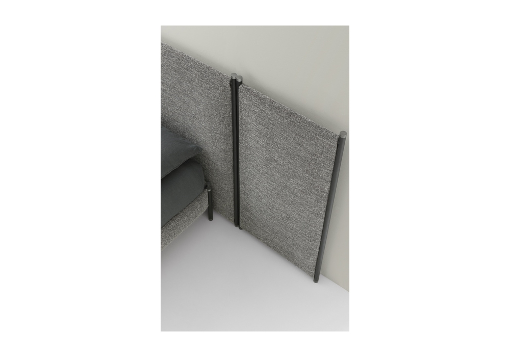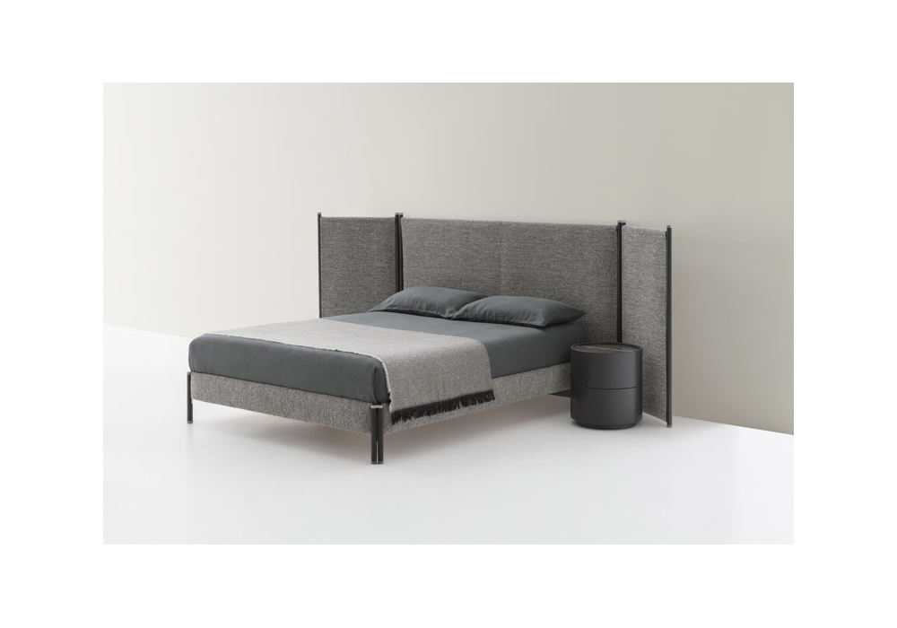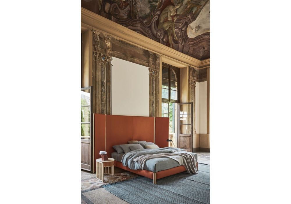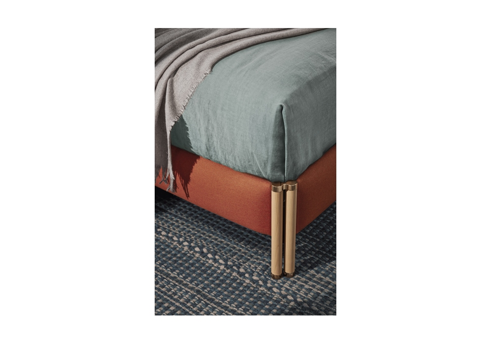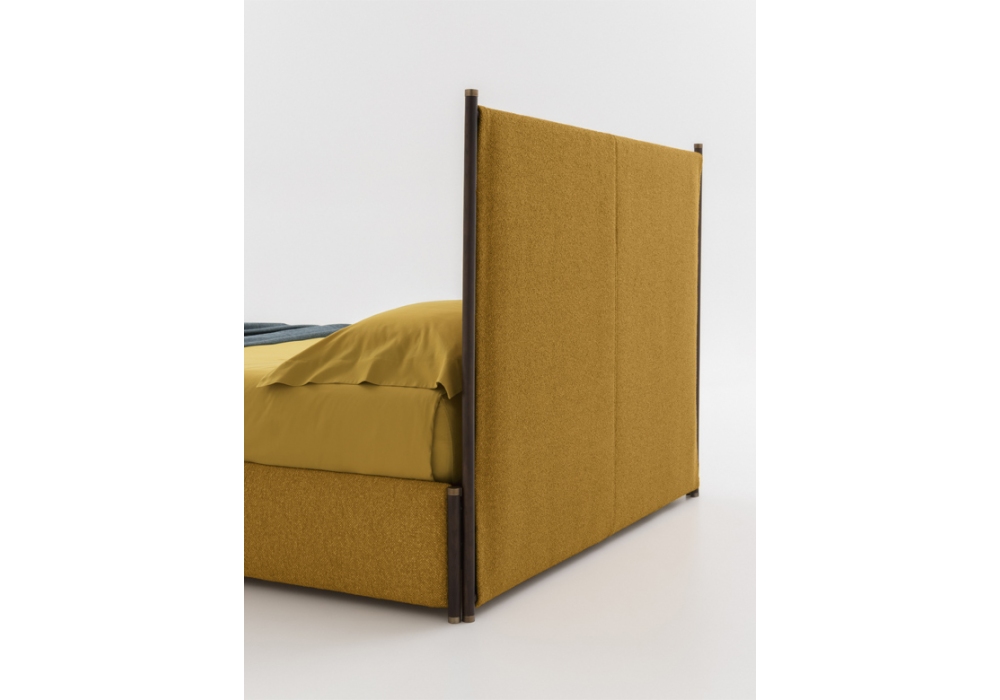 Bricola von Raffaella Mangiarotti für Pianca entworfen, ist ein Bett mit Pfosten aus massivem Walnussholz in der Ausführung Canaletto oder aus massiver Esche lackiert in Essenza oder lackiert und mit dekorativen Metallspitzen. Struktur in zwei Versionen, Sommier- oder Bettrahmen, mit Spanplattenplatten, gepolstert mit expandiertem Polyurethan. Der abnehmbare Bezug besteht aus Stoff. Erhältlich mit Lattenrost oder Container.