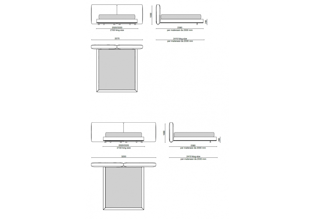 | Matratzengröße | 180 x 200 cm; 200 x 200 cm; 193 x 203 cm (King Size). |