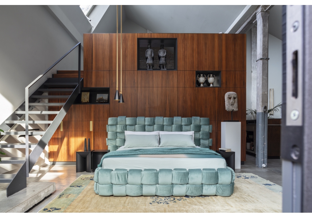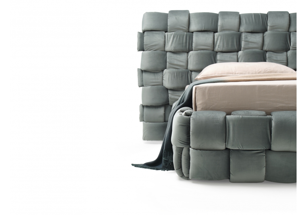 Flirt von Bellavista Piccini für Mogg entworfen, ist ein gepolstertes Bett mit abnehmbarem Stoffbezug und Lattenrost aus Buchenholz.