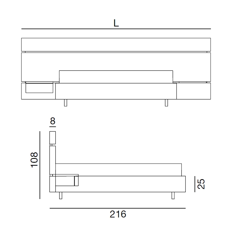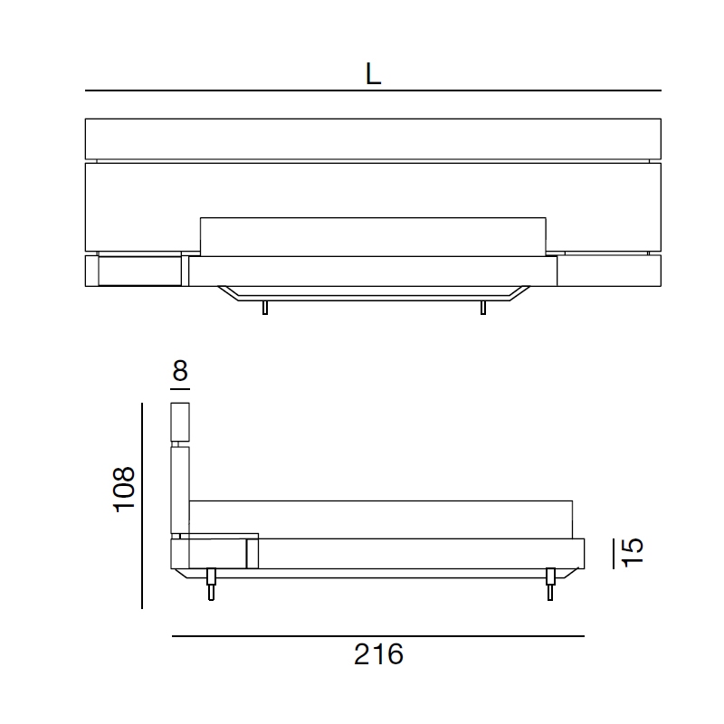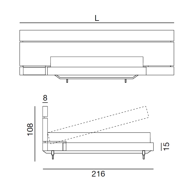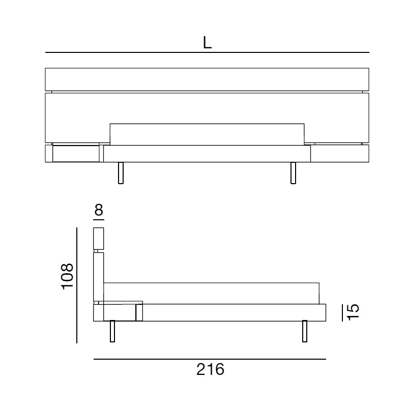 | Abmessungen | 229 x H 15/104 cm; 229 x H 25/104 cm. |
