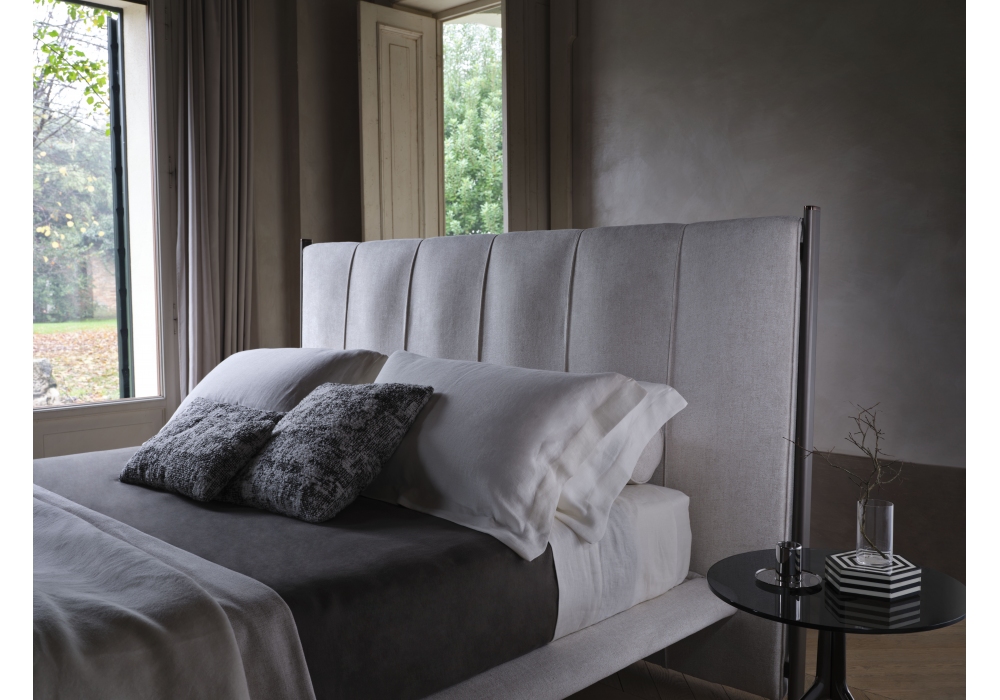 Levante von Dainelli Studio für Conte Casa entworfen, ist ein Bett mit teilweise abnehmbarem Stoff- oder Lederbezug. Stangen und Füße in Bronzeoptik mit Nickeldetails. Verfügbar in mehreren Ausführungen und Abmessungen.
