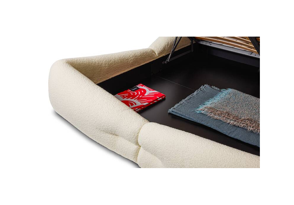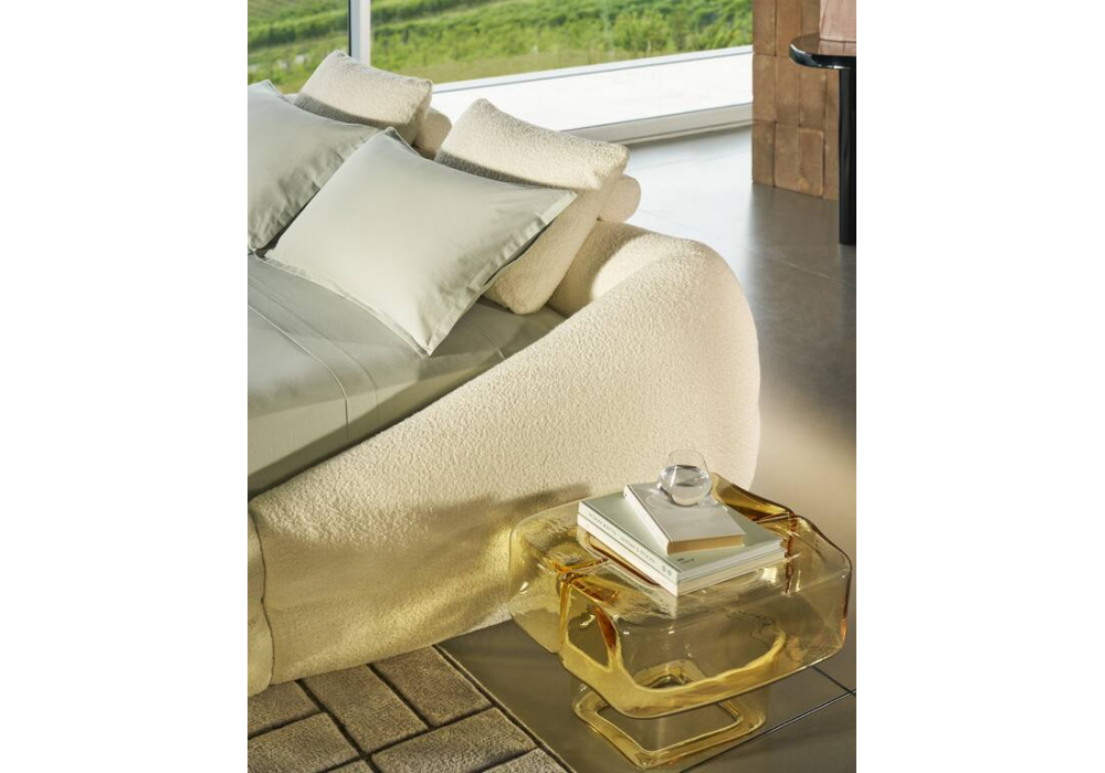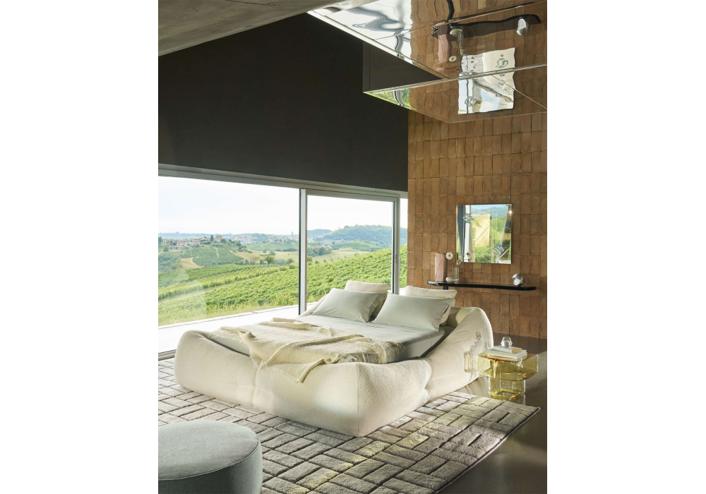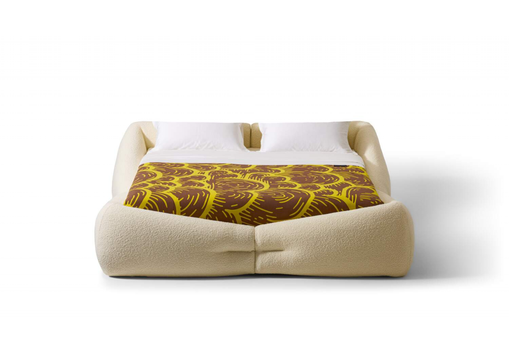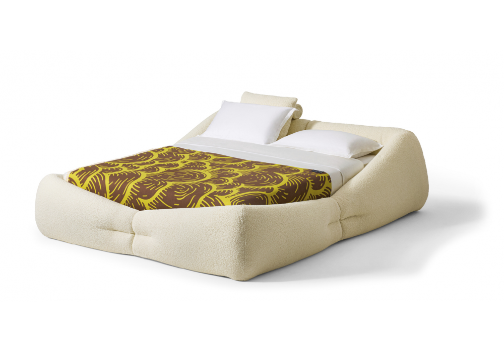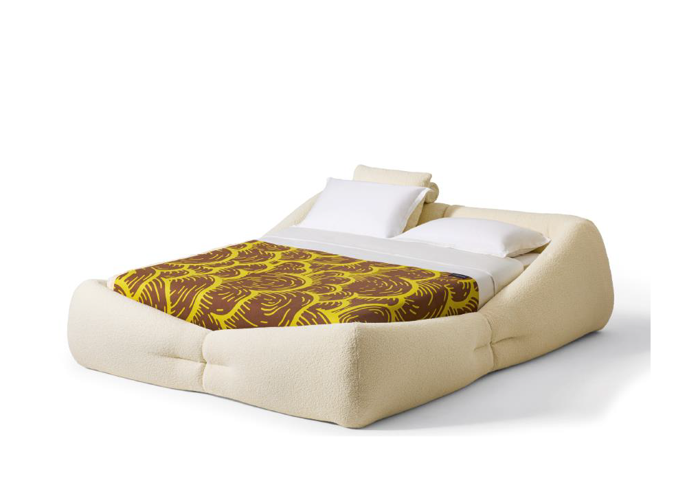 Mon-Nid von Patricia Urquiola für Cassina entworfen, ist ein Bett, das vollständig mit recycelter Polyesterfaserwatte gepolstert ist. Stoffbezug. Auch mit einem Containersystem mit Netzen und Lattenrost erhältlich.