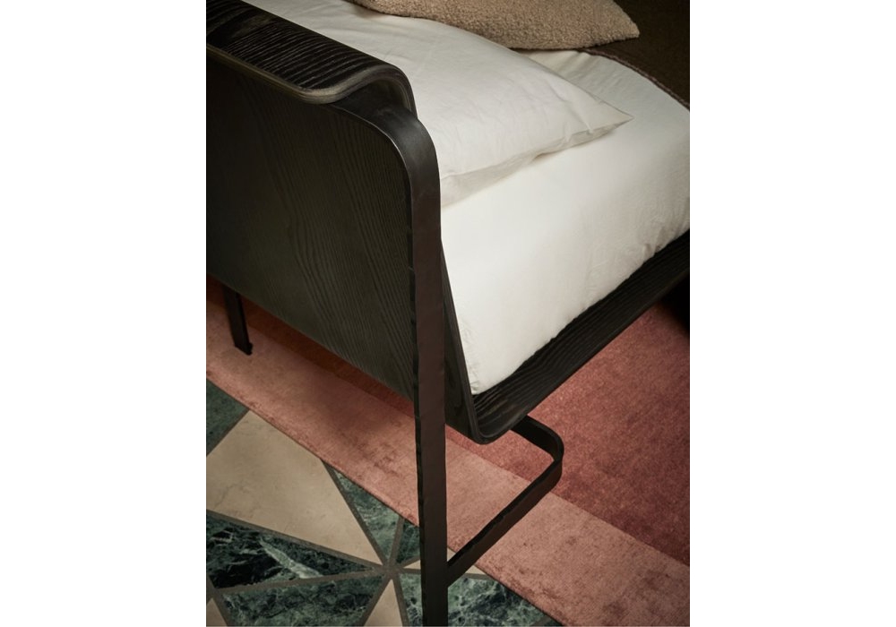 Bend-e wood von Zanellato/Bortotto für Bolzan entworfen, ist ein Bett mit Eisenstruktur, Kopfteil und Untergestell aus Holz, geformt zu einem einzigen Körper, der sich über die gesamte Struktur des Bettes erstreckt und auf schmiedeeisernen Beinen ruht. Zanellato/Bortotto kümmerte sich auch um die Oberflächenbehandlung und wählte natürliche Pigmente aus, die manuell auf die Holzstruktur und die Eisenteile aufgetragen und anschließend mit einem speziellen Bienenwachs fixiert wurden, um den Respekt vor dem Territorium noch einmal zu unterstreichen.