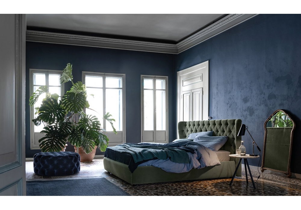 Selene von Bolzan Lab entworfen, ist ein gepolstertes Bett mit Bettkasten und Kopfteil mit nicht abnehmbarem Bezug. Eine gelungene Neuinterpretation der großen Klassiker der Nachtmöbel – Selene vereint Raffinesse und Behaglichkeit. Das große gepolsterte Kopfteil mit handgefertigten Knopfheftungen zitiert antike Atmosphären, die wieder in Mode kommen. Verfügbar in verschiedenen Abmessungen.
