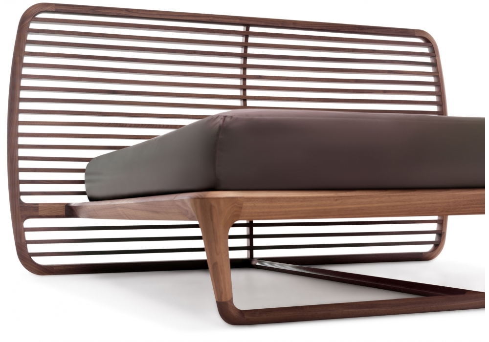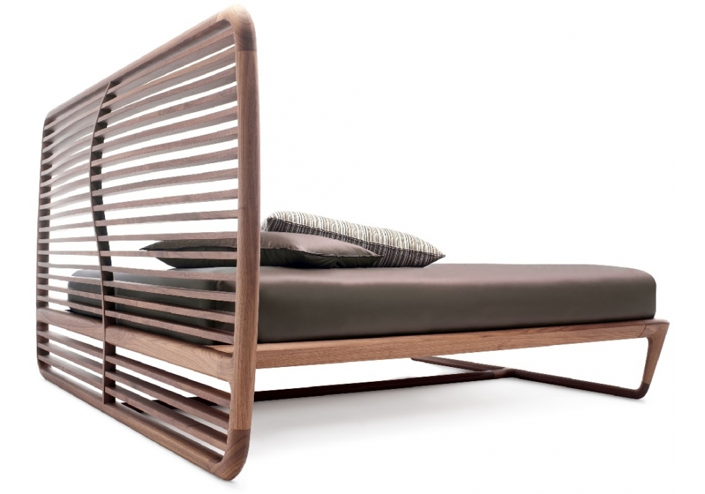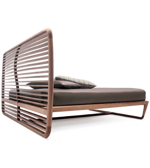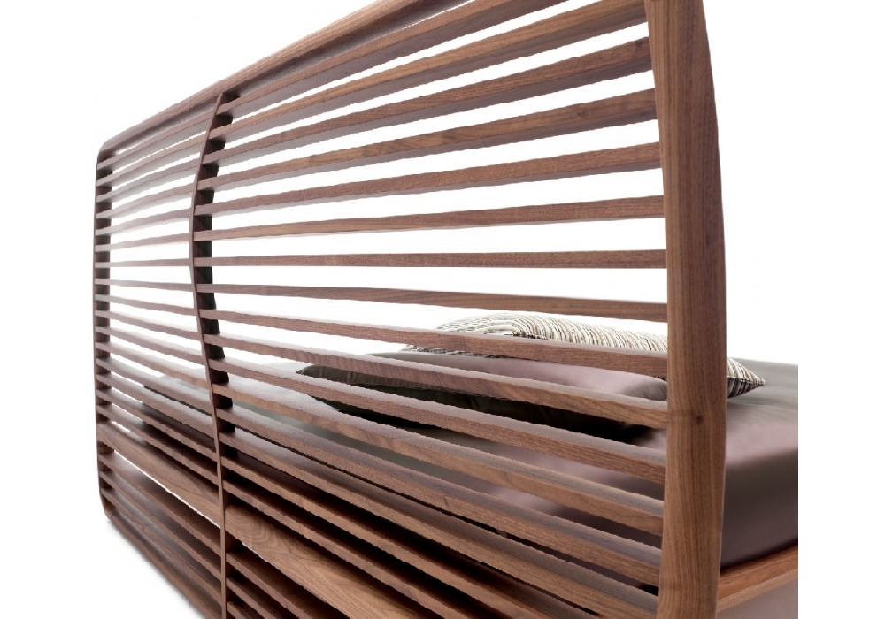 Buonanotte Valentina by Ceccotti Collezioni is a bed made in solid American walnut, headboard made with curved wooden slats. Available with high or low headboard (mattress 180 x 200 excluded).