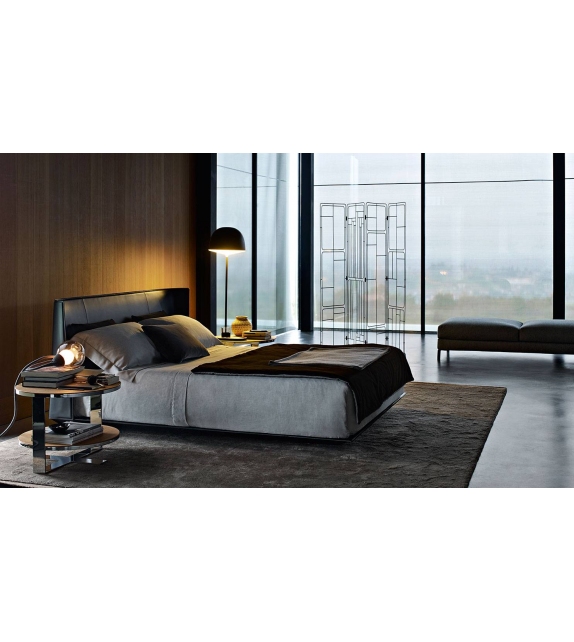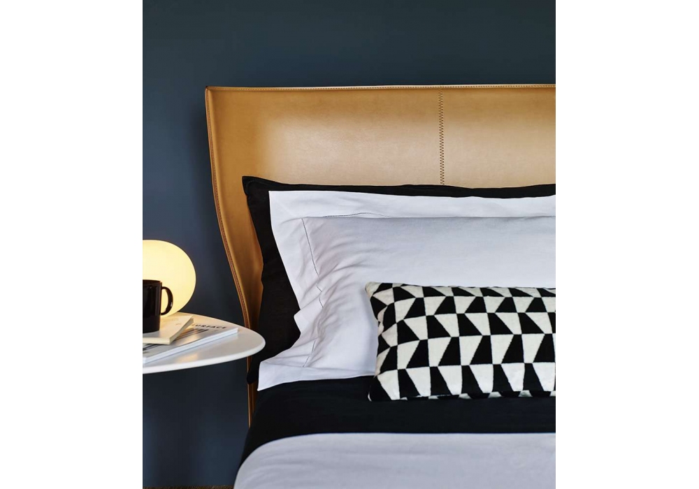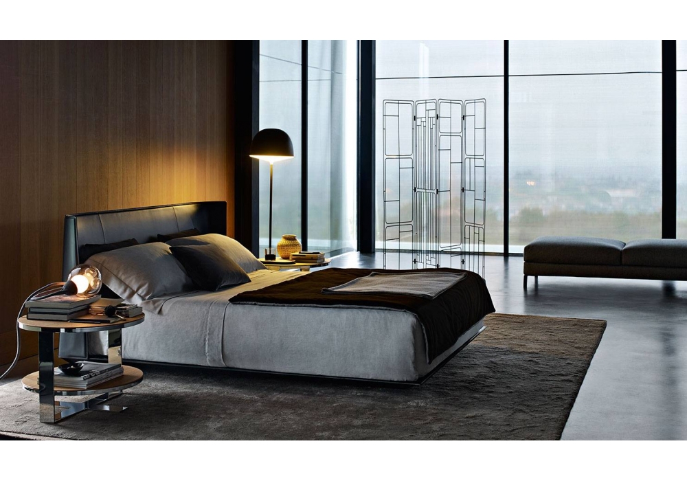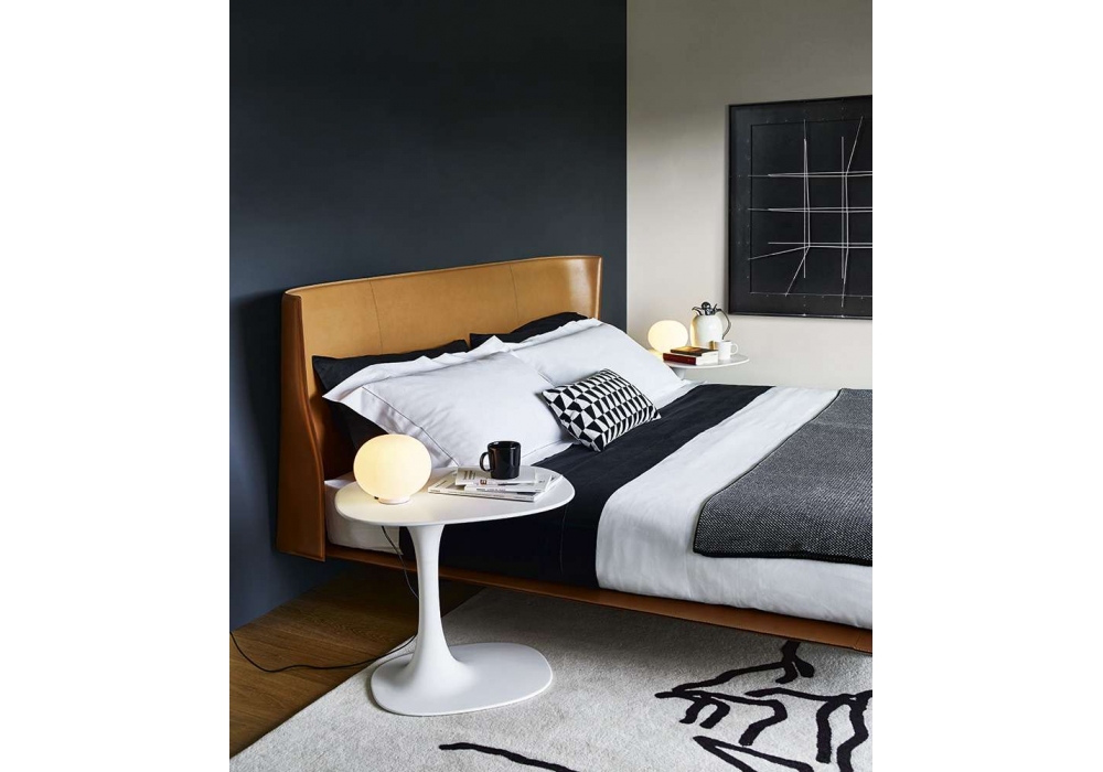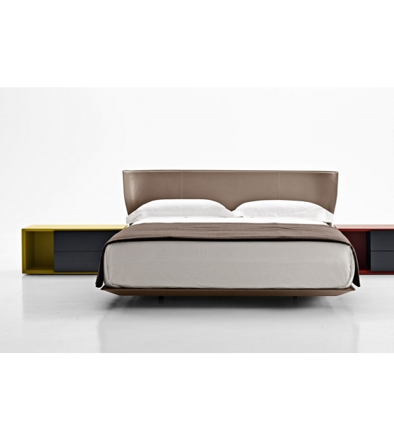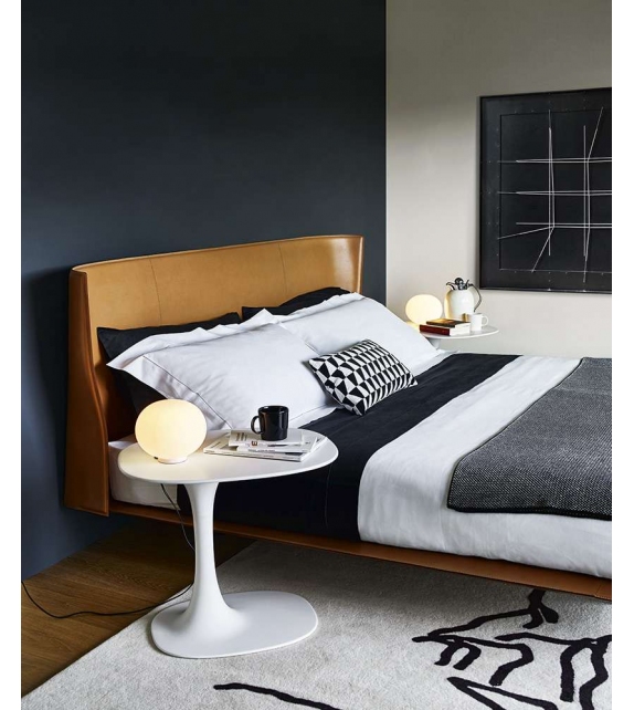 Alys von Gabriele und Oscar Buratt für B&B Italia entworfen ist ein Bett mit Innenrahmen aus Stahlrohr und Stahlprofilen, mit Polsterung aus Bayfit®-Polyurethanschaum und Lederbezug in verschiedenen Ausführungen. Lattenrost aus Stahlrohr und Sperrholzlatten, Füße aus thermoplastischem Material.