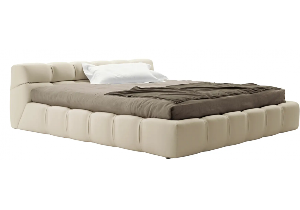 Tufty-Bed von Patricia Urquiola für B&B Italia entworfen, ist ein Bett mit einem Innenrahmen aus Stahlrohr und Stahlprofilen mit Bayfit®-Polyurethanschaumpolsterung und Bezug aus verschiedenen Stoffen oder Ledern. Füße aus massiver Eiche. Auf Anfrage auch in der Version mit Stauraum erhältlich.