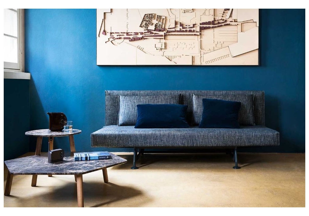 Sliding von Pietro Arosio für Tacchini entworfen, ist eine praktische, aber äußerst elegante Sofa mit seiner Basis in Aluminium-Guss gekennzeichnet, die sich in ein bequemes Doppelbett verwandelt, indem einfach die Rückenlehne über den patentierten Mechanismus zu senken.