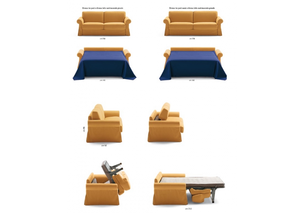 Cy von Campeggi entworfen, ist ein Sofa, das sich sehr leicht in ein Bett verwandeln lässt. Kein Kissen zu entfernen: Um Cy in ein Bett zu verwandeln ist sehr einfach, Sie müssen nur den Rückenlehne drücken. Verfügbar in 2 Größen. Matratze verfügbar in 2 modells.