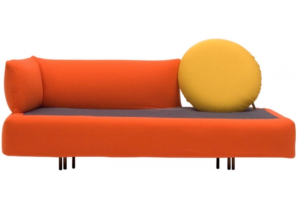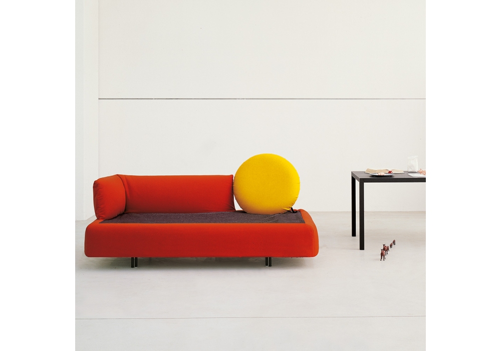 Oblò von Vico Magistretti für Campeggi entworfen, ist ein Schlafsofa, das sich leicht in eine Chaiselongue, ein Einzelbett oder ein Doppelbett verwandeln lässt. Die große Runde Kissen kann sowohl eine Rückenlehne als auch ein entspannendes Kissen sein. Stahlrahmen mit Polyurethanschaum und Faser gepolstert. Holzbettlatten mit einer Matratze aus Polyurethanschaum.