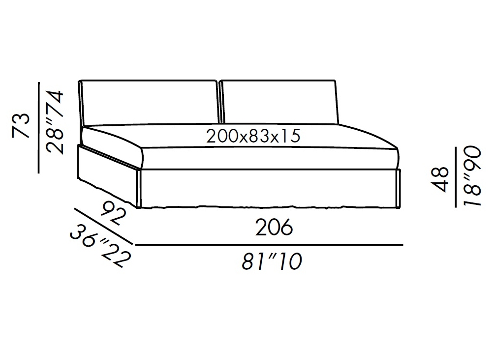Fox, von Andrea Parisio für Meridiani entworfen, ist ein Easy Bed mit integriertem Lattenrost und gepolsterten, abziehbaren Holzpaneelen. Sitz-Liege-Matratze, abziehbar, Rückseite Drell, Polsterung aus PU-Schäumen und antiallergischer Polyesterfaserabdeckung.