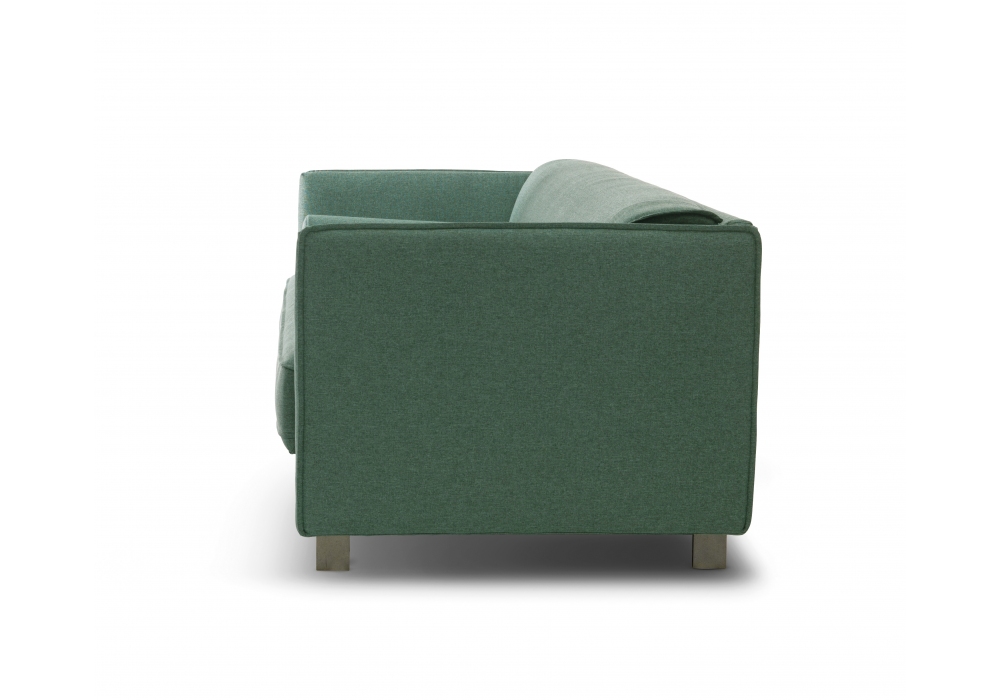 Matrix von Giulio Manzoni für Campeggi entworfen, ist ein Schlafsofa mit kleinen Rollkissen kombiniert mit hohen Armlehnen und Füßen aus matt brüniertem Metall. Struktur aus Holz, Mechanismus aus elektrogeschweißtem Stahlgitter mit Matratze aus Polyurethanschaum oder Federn. Der Bezug ist komplett abnehmbar in verschiedenen Farben.