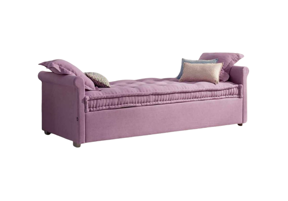 Camelia Mod. 31, entworfen und hergestellt von Twils, ist ein Schlafsofa mit geschweiften Armlehnen und abnehmbarer Steppmatratze. Einschließlich orthopädischer Strukturbasis und Ratsche für Spritzschutz. Wenden Sie sich an unseren Kundenservice, um Ihr Schlafsofa mit den von Ihnen bevorzugten Füßen zu konfigurieren.