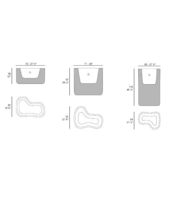 Milos von Jean Marie Massaud für Vondom entworfen, ist ein Pflangefäss aus rotationsgeformtem Polyethylen. Verfügbar in mehreren Ausführungen und Abmessungen.