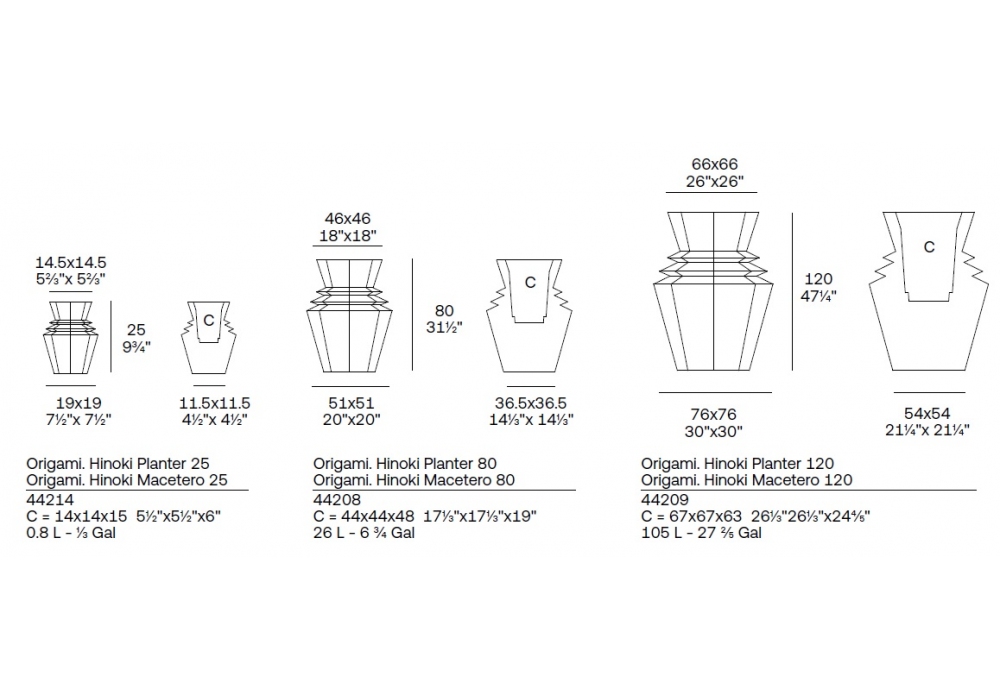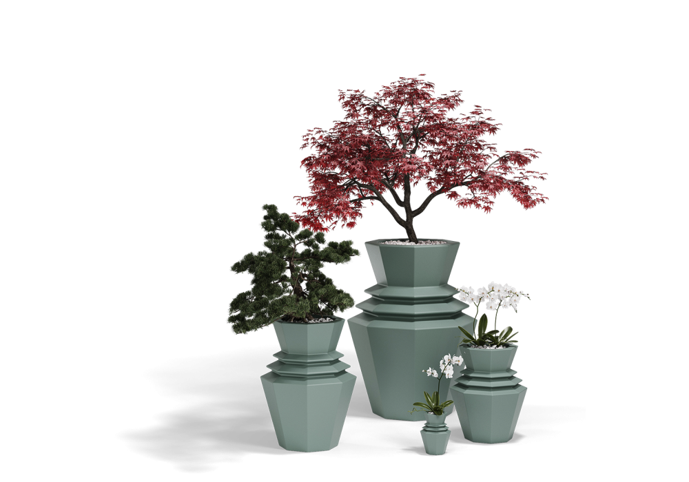 Origami Hinoki von Studio Vondom entworfen, ist ein Pflangefäss aus Polyethylen mit mattem oder lackiertem Finish oder mit interner LED-Beleuchtung. Verfügbar in mehreren Ausführungen und Abmessungen.