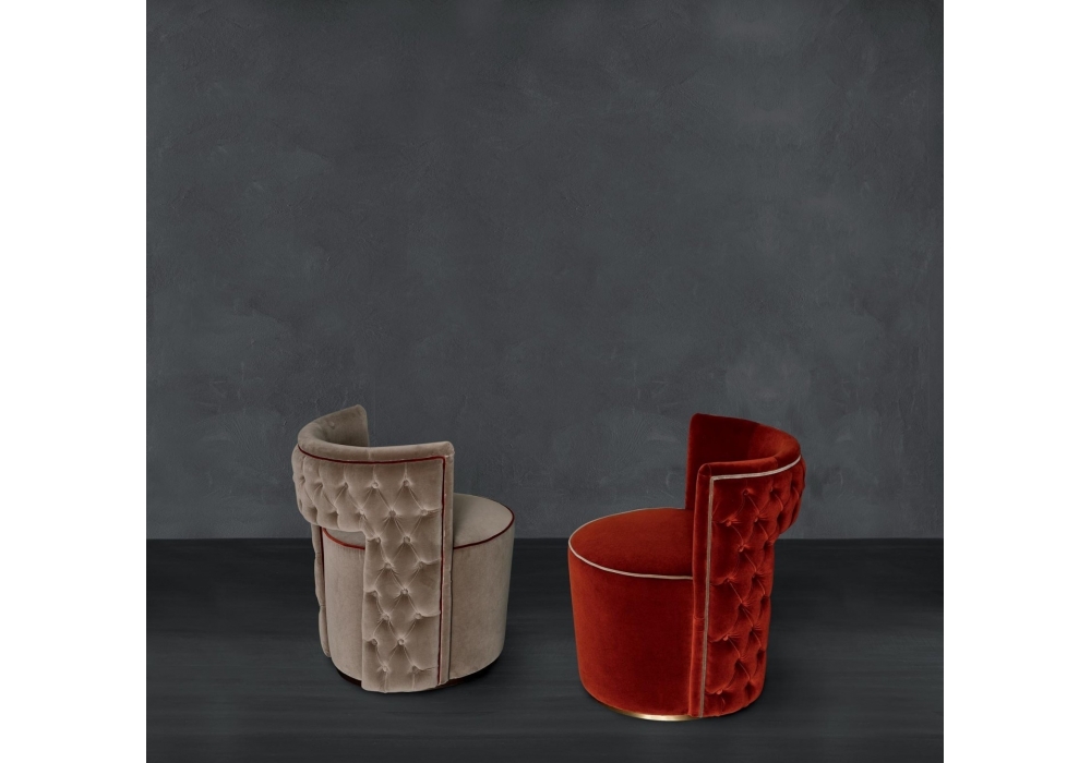 Giotto von Rugiano entworfen, ist ein Hocker mit Leder- oder Stoffbezug und Details aus bronziertem Messing oder Chrom. Erhältlich in verschiedenen Ausführungen und in zwei Größen.