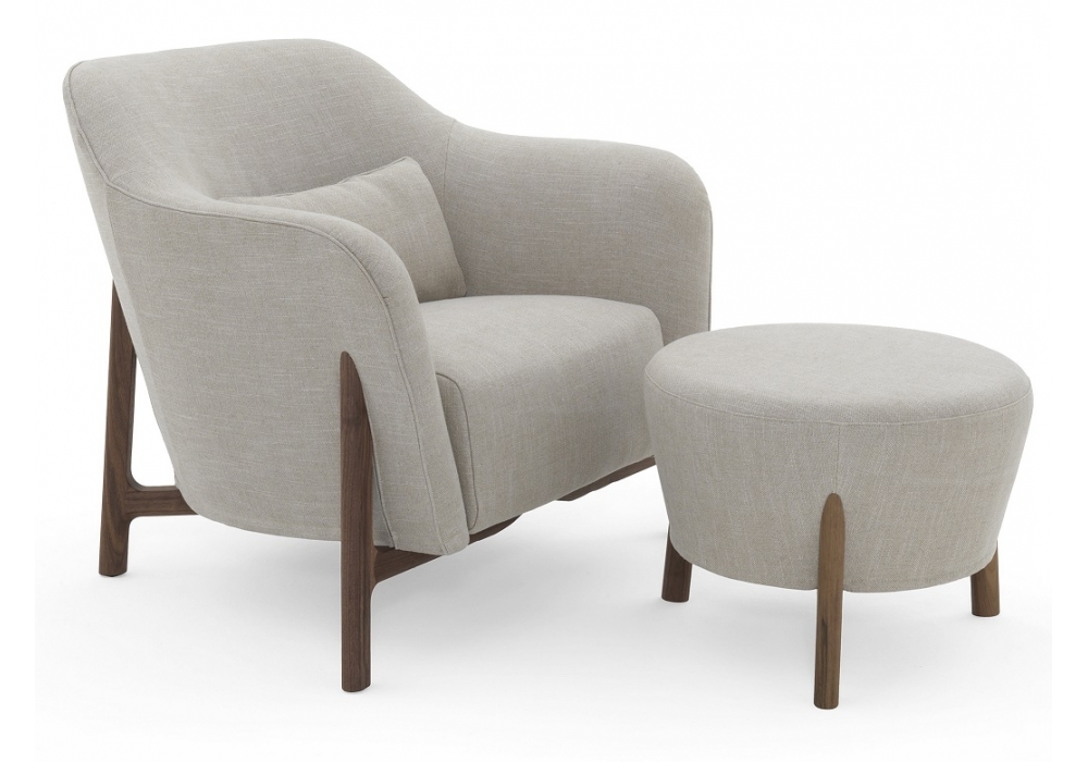 Pilotis von Philippe Nigro für Depadova entworfen, ist ein Hocker mit Struktur aus Stahl und Holz, Beinen aus massivem Nussbaum und Polsterung aus Polyurethanschaum. Die Polsterung ist in verschiedenen Ausführungen erhältlich, sie ist aus Stoff abnehmbar oder in Leder oder Samt befestigt.