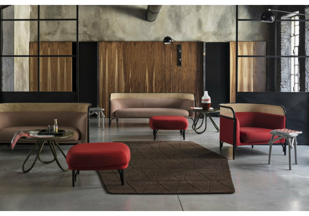 Targa von Gamfratesi für Gebrüder Thonet Vienna entworfen, ist ein Sitzpuff mit Struktur aus gebogener Buche, verfügbar in verschiedenen Ausführungen. Großes gepolstertes Sitzkissen mit Stoff- oder Lederbezug. Der Hocker ist auch mit Messingspitzen erhältlich.