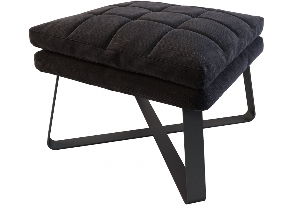 Lolyta designed by Andrea Parisio for Meridiani is a pouf with base in metal with glossy black nickel finish and cushion in polyurethane with fixed quilted cover. Bolster in reinforced feathers. Upholstery available in fabric or leather.