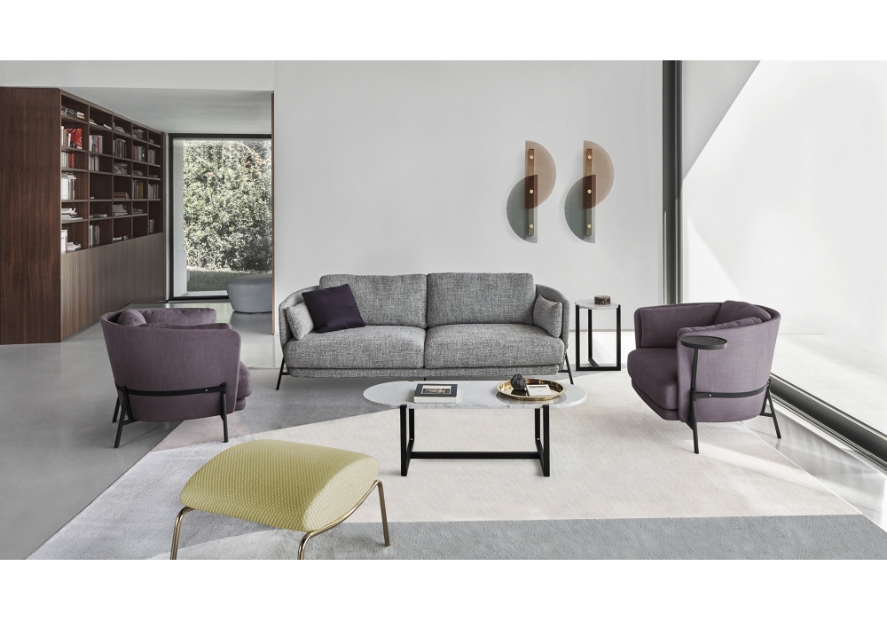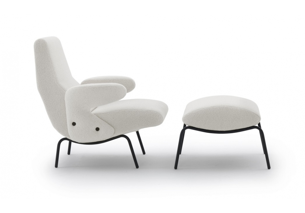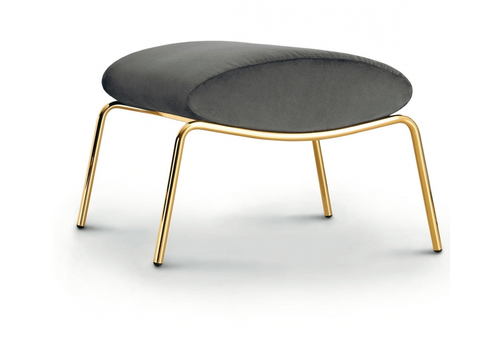 Delfino von Erberto Carboni für Arflex entworfen, ist ein Pouf mit Beine aus schwarzer oder golden lackierter Metall. Überzug aus Stoff oder Leder.