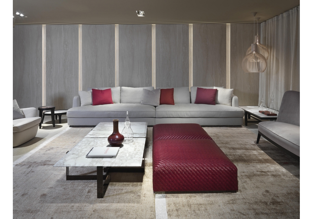 Carmen, von Roberto Lazzeroni für Flexform entworfen, ist ein Pouf aus der Mood-Kollektion. Holzrahmen mit Polsterung aus Polyurethan, bezogen mit einem schützenden Stofffutter. Metallfüße. Bezug aus gewebtem Leder verfügbar in verschiedenen Ausführungen. Verfügbar in zwei Abmessungen.