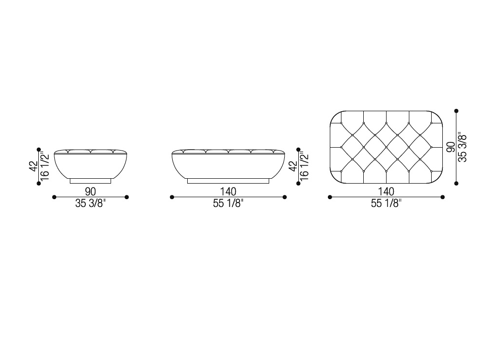 Fritz von Castello Lagravinese Studio für Opera Contemporary entworfen, ist ein Pouf mit einen raffinierten Capitonnè-Arbeiten am Sitz und Bezug verfügbar aus Stoff oder Leder. Metall Basis, verfügbar in verschiedenen Ausführungen.