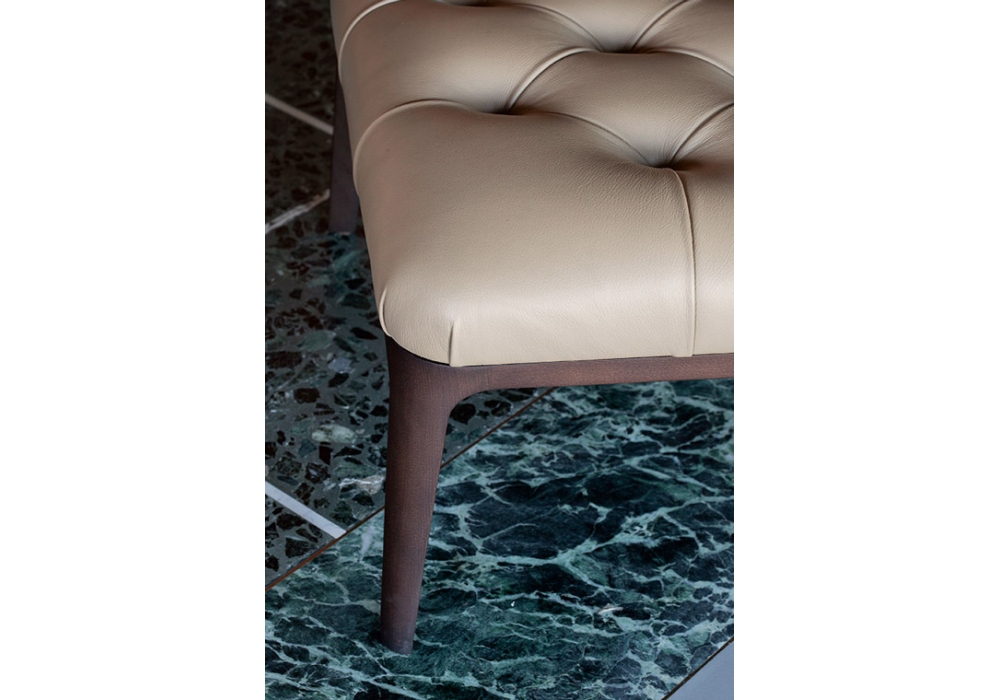 Glenn von Roberto Lazzeroni für Poltrona Frau entworfen, ist ein Pouf/Fußstütze mit Struktur aus Birkensperrholz und Polsterung aus Polyurethanschaum. Der Sitz verfügt über ein handgemachtes Capitonné-Design. Beine aus Eschenholz. Bezug aus Pelle Frau Leder.