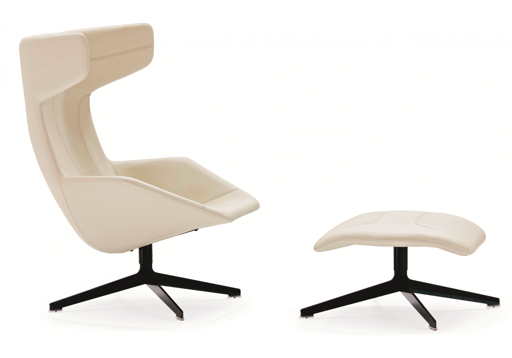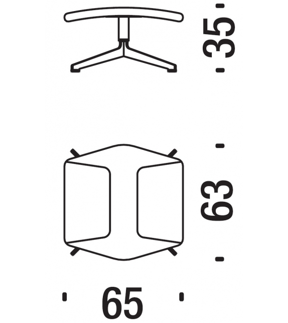 Take a Line for a Walk von Alfredo Häberli für Moroso entworfen, ist ein Sitzpuff aus expandiertem Polyurethan mit Holzstruktur und Drehfuß mit 4 lackierten Speichen. Polsterung in mehreren Stoffen oder Ledern.