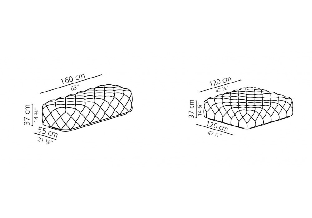 | Abmessungen | 160 x 55 x H 37 cm; 120 x 120 x H 37 cm. |