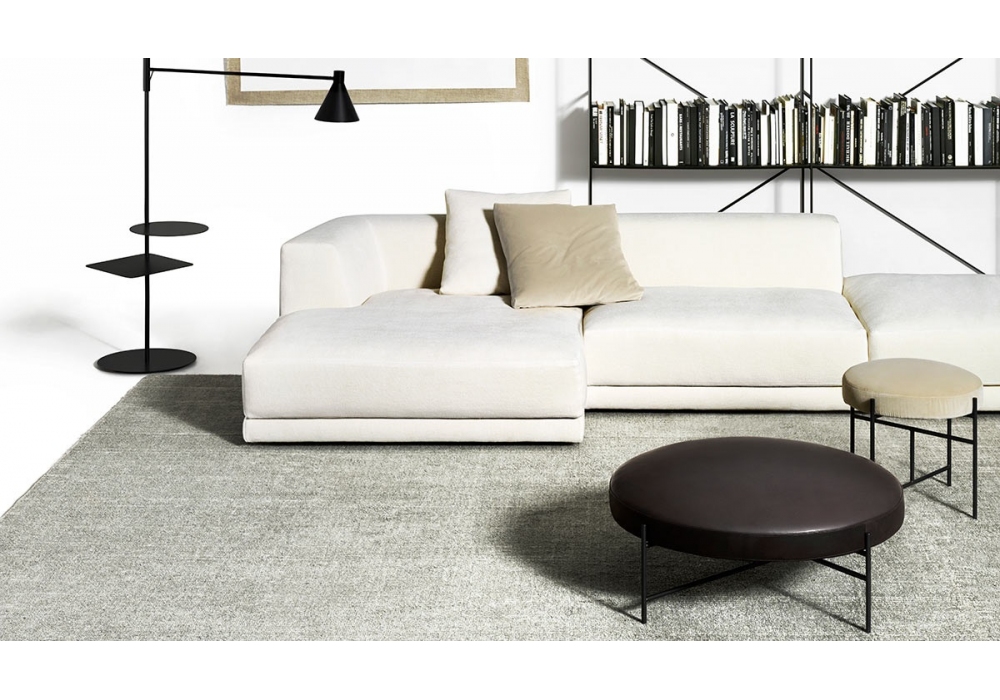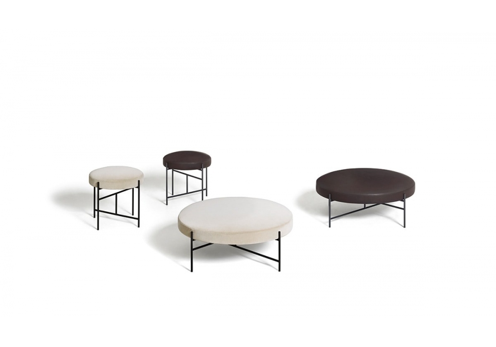 Sen von Kensaku Oshiro für DePadova entworfen, ist ein Sitzpuff mit einer Struktur aus anthrazitgrau lackiertem Stahl und Holz, verstellbaren Füßen und einem abnehmbaren Bezug aus Stoff und Leder. Verfügbar in mehreren Ausführungen und Abmessungen.