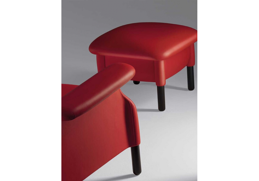 Sanluca von Achille & Pier Giacomo Castiglioni für Poltrona Frau entworfen, ist ein Pouf mit Polyurethanschaumpolsterung aus einem Block mit unterschiedlichen Dichten, Füßen aus Massivholz und Bezug aus Pelle Frau® Leder oder Stoff.