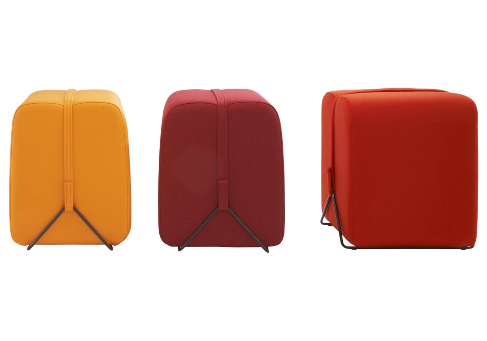 Mobidec von Pierre Charpin für Ligne Roset entworfen, ist ein Hocker/Fußstütze mit Polsterung aus hochelastischem Bultex-Polyurethanschaum. Ein Stoff-/Lederband, passend zum Hocker, umschließt die Sitzfläche und dient als Griff, damit Mobidec leicht angehoben und bewegt werden kann.
