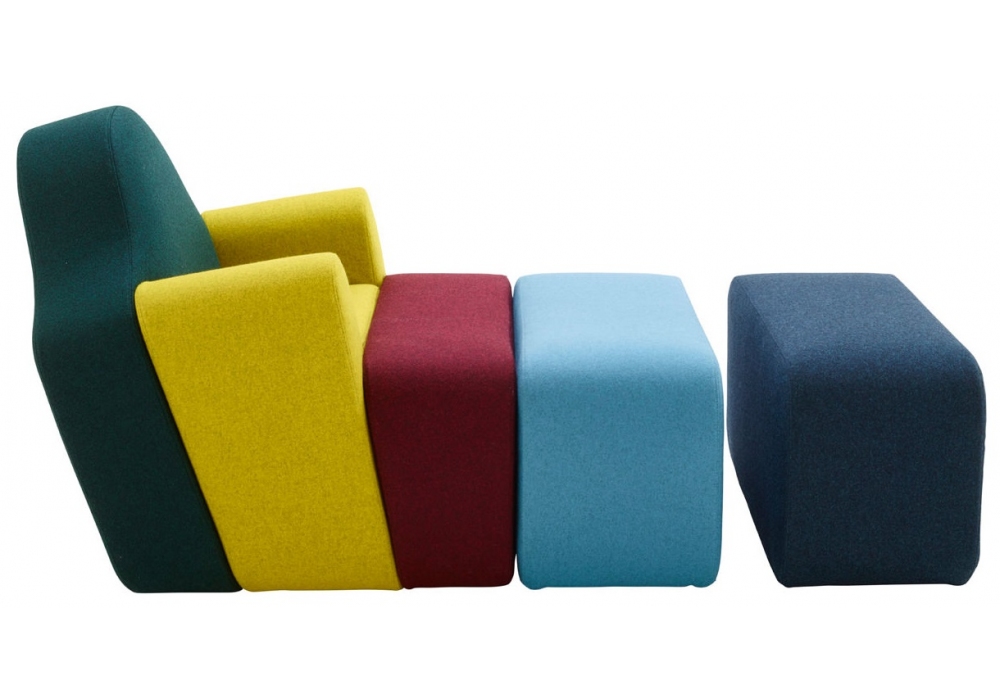 Slice von Pierre Charpin für Ligne Roset entworfen, ist ein Sitzpuff mit Polsterung aus hochelastischem Polyurethan. Bezug aus Stoff.