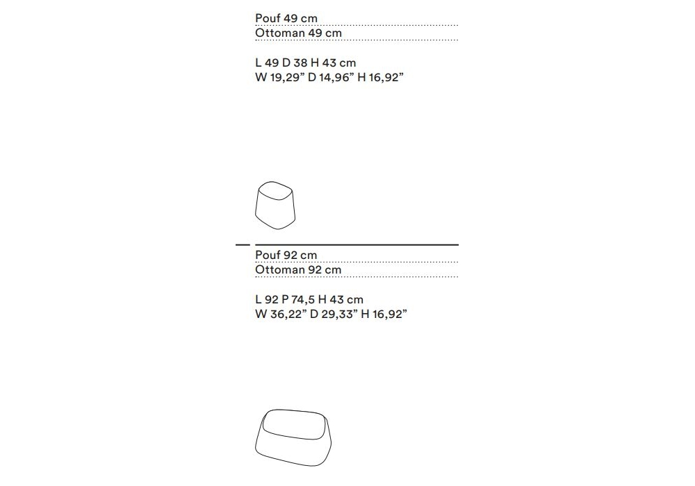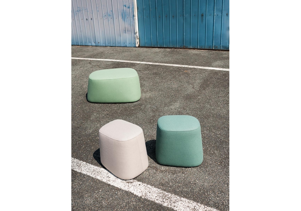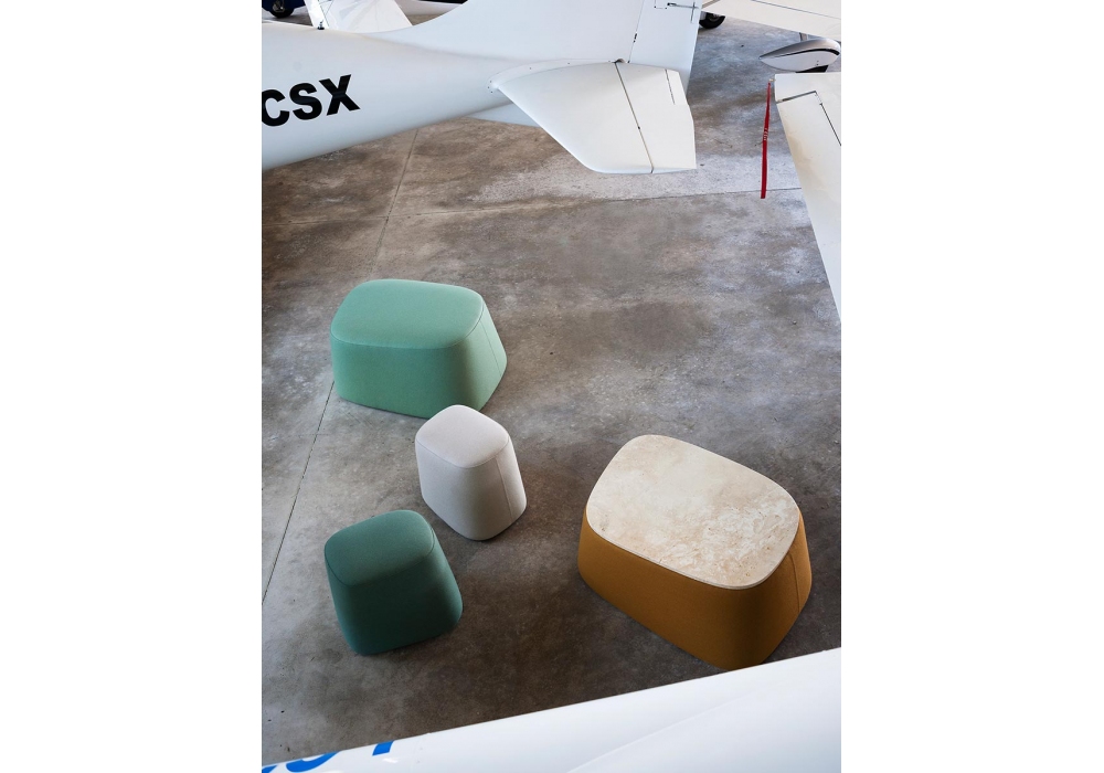 Float von Pearson Lloyd für Tacchini entworfen, ist ein Sitzpuff erhältlich in zwei Größen. Die innere Struktur besteht aus Pappelsperrholz mit elastischen Riemen, Polsterung aus Polyurethanschaum mit mehreren Dichten. Die Füße sind aus Aluminium. Der nicht abnehmbare Bezug ist in verschiedenen Ausführungen erhältlich.