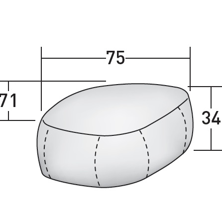 Pierre von Studio Contromano für Flou entworfen, ist eine Kollektion von gepolsterten Sitzpuffs mit unregelmäßigen Formen. Abnehmbarer Bezug aus Stoff oder Ledermit sichtbaren Deckstichen.