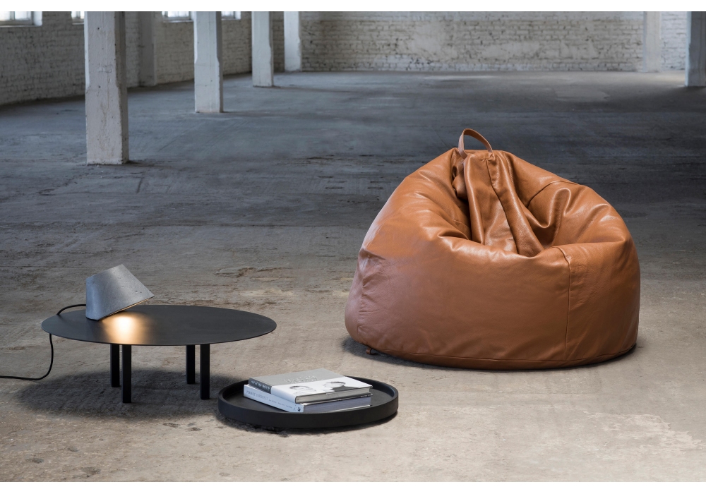 Bean Bag von Bea Mombaers für Serax entworfen, ist ein Sitzpuff, komplett aus Leder in Cognac- oder Schwarztönen konzipiert. Im oberen Teil ist ein praktischer Griff eingenäht, um ihn bequem von einem Ort zum anderen tragen zu können.