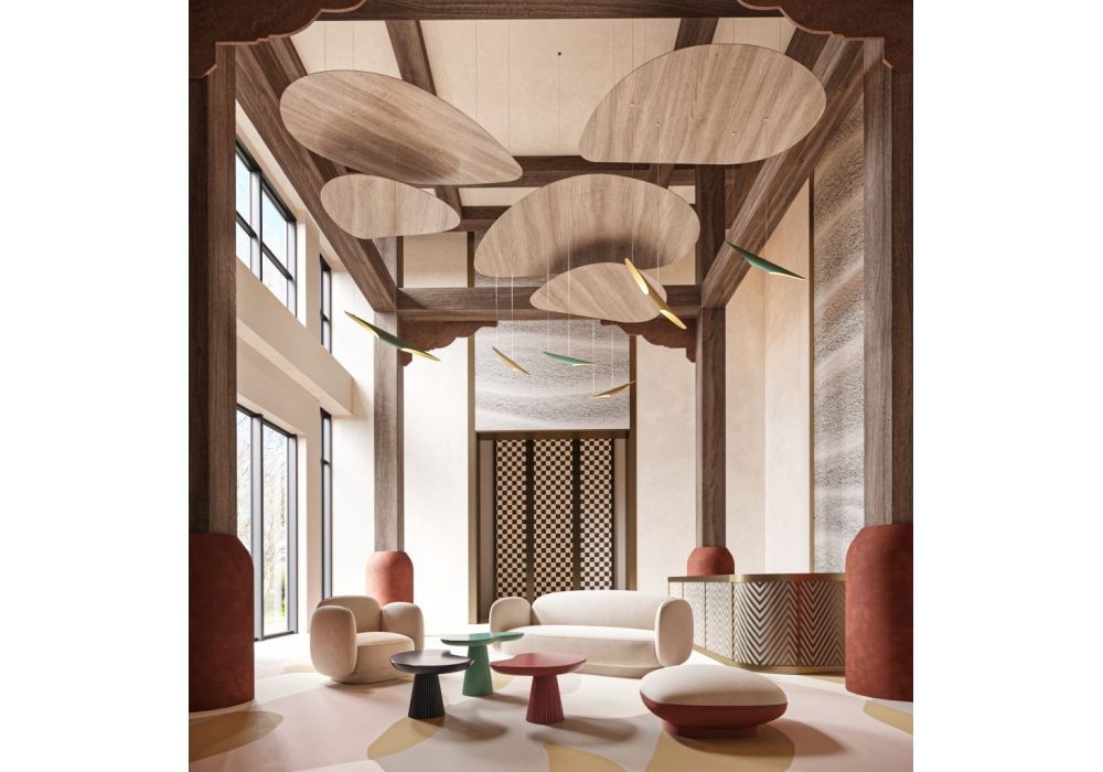 Major Tom von Thomas Dariel für Maison Dada entworfen, ist ein Hocker mit Struktur aus Massivholz und Sperrholz. Es ist vollständig mit Memory-Schaum gepolstert und mit verschiedenen Stoffarten bezogen.